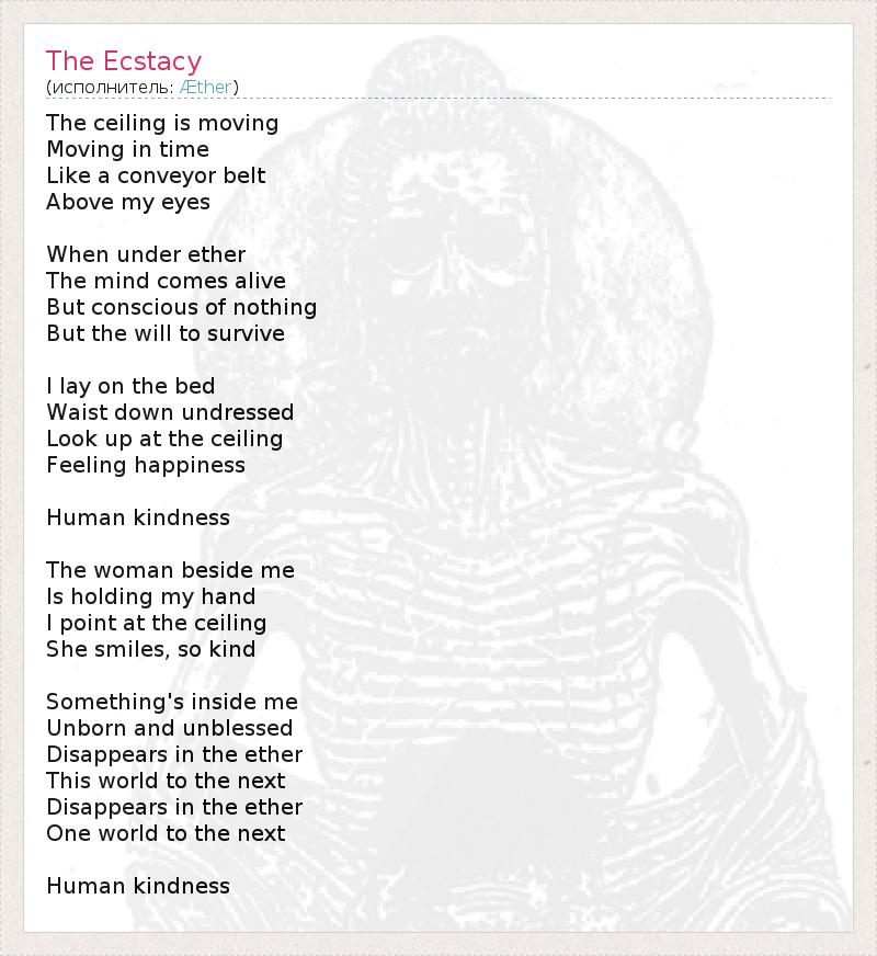 А как ты думаешь, о чем песня "The Ecstacy" ?