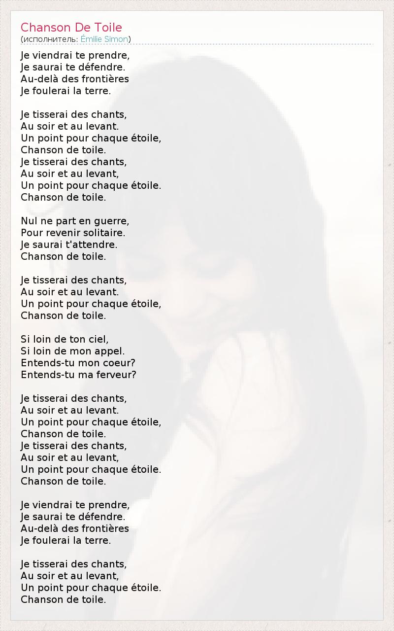 А как ты думаешь, о чем песня "Chanson De Toile" ?