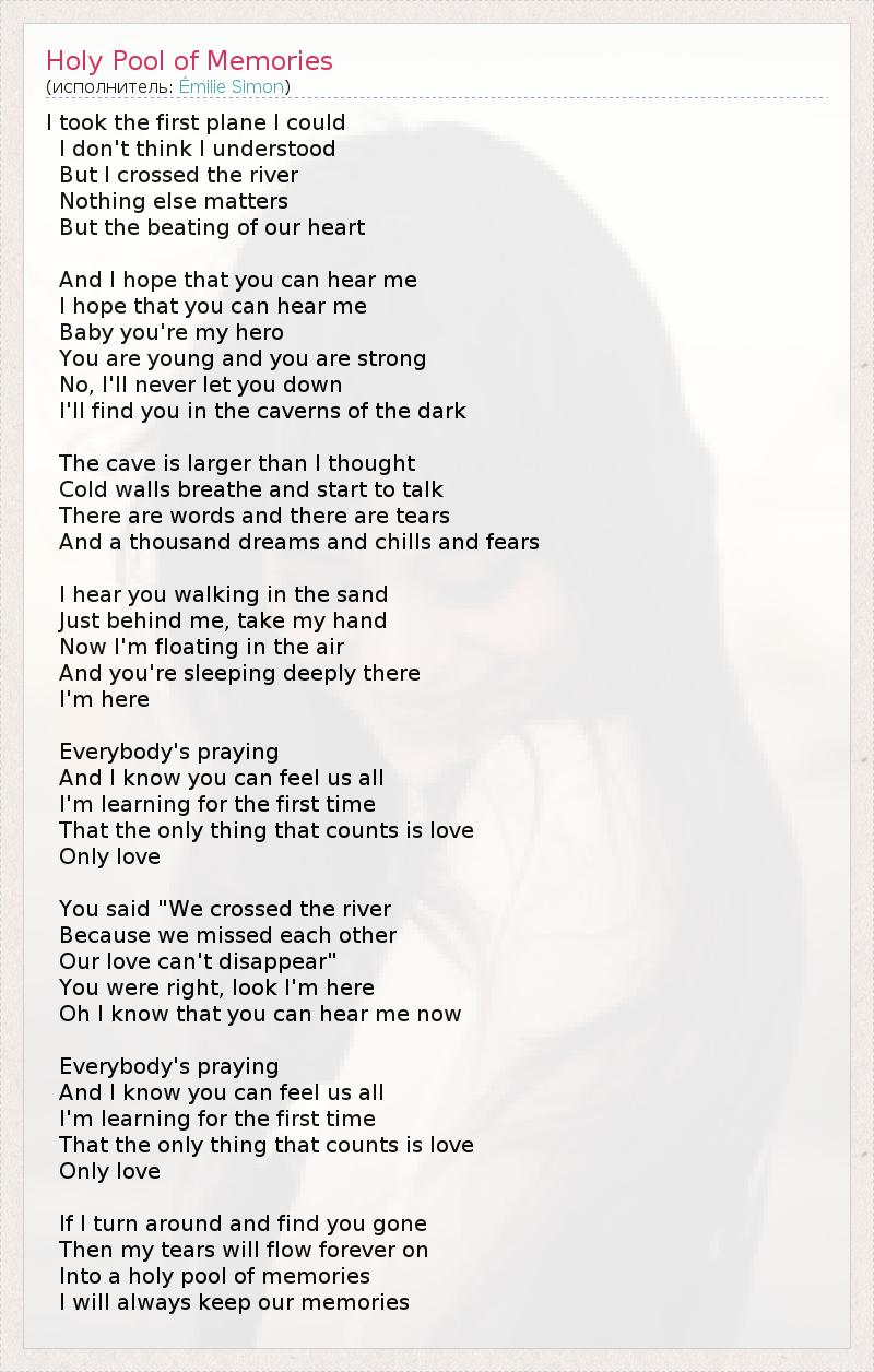 А как ты думаешь, о чем песня "Holy Pool of Memories" ?