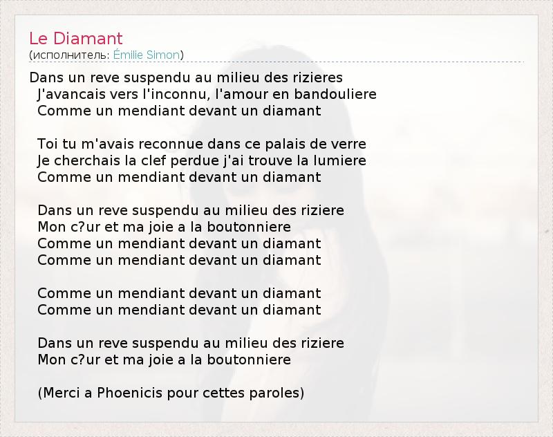 А как ты думаешь, о чем песня "Le Diamant" ?