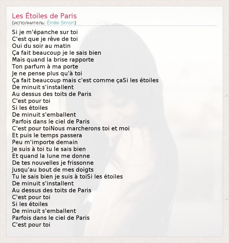 А как ты думаешь, о чем песня "Les Étoiles de Paris" ?