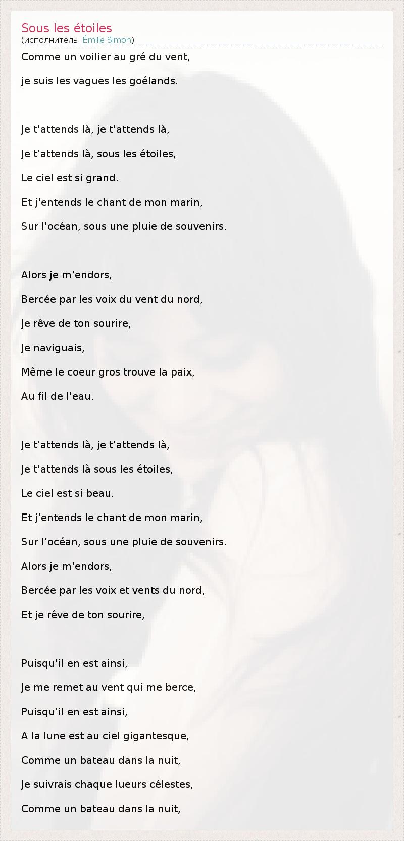 А как ты думаешь, о чем песня "Sous les étoiles" ?