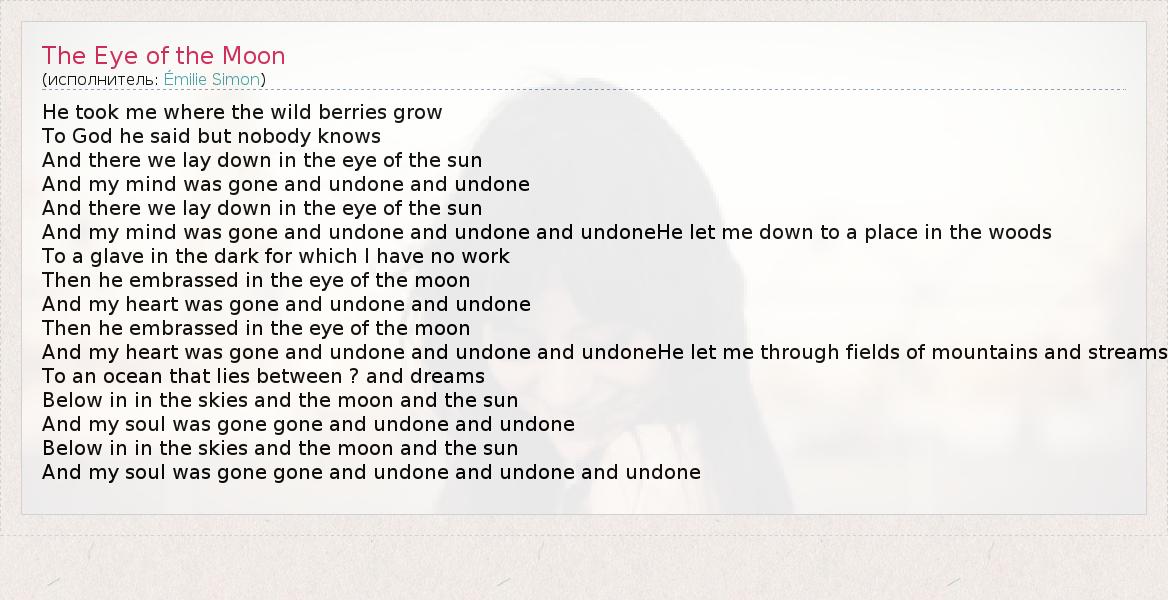 А как ты думаешь, о чем песня "The Eye of the Moon" ?