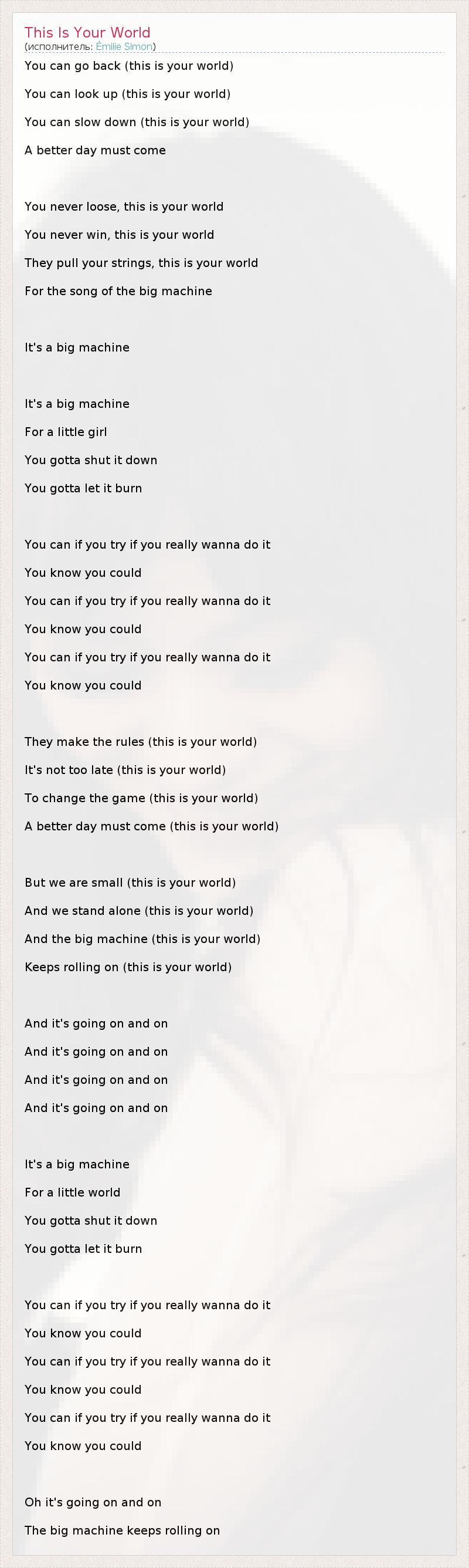А как ты думаешь, о чем песня "This Is Your World" ?