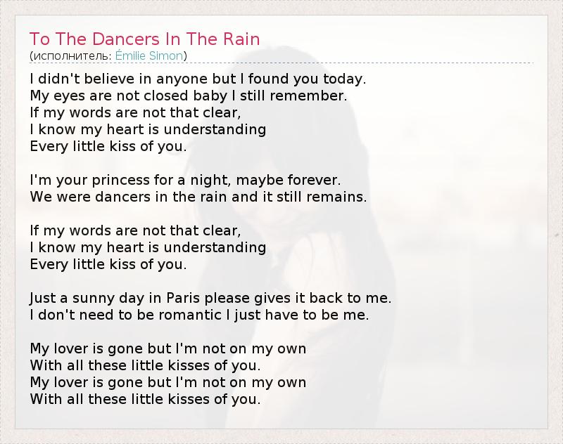 А как ты думаешь, о чем песня "To The Dancers In The Rain" ?