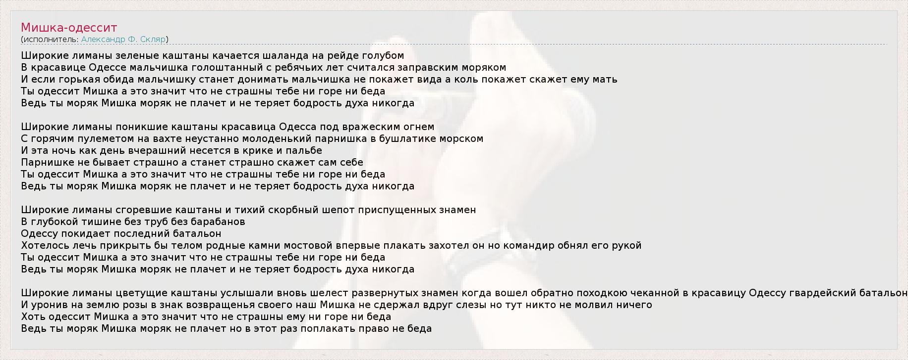 А как ты думаешь, о чем песня "Мишка-одессит" ?