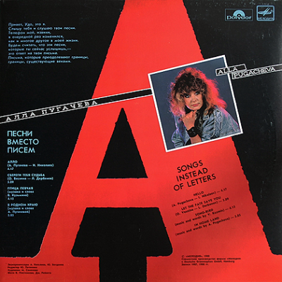 ГлавнаяИсполнителиАлла ПугачёваПесни вместо писем