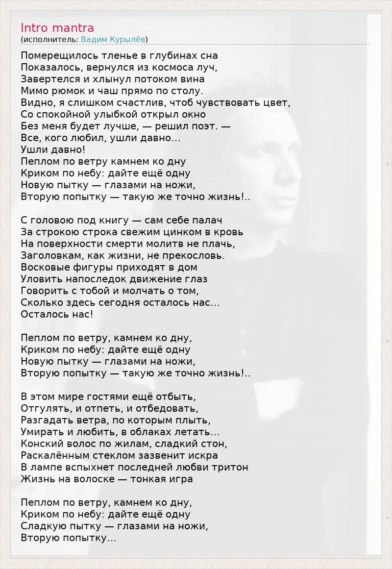 А как ты думаешь, о чем песня "Intro mantra" ?