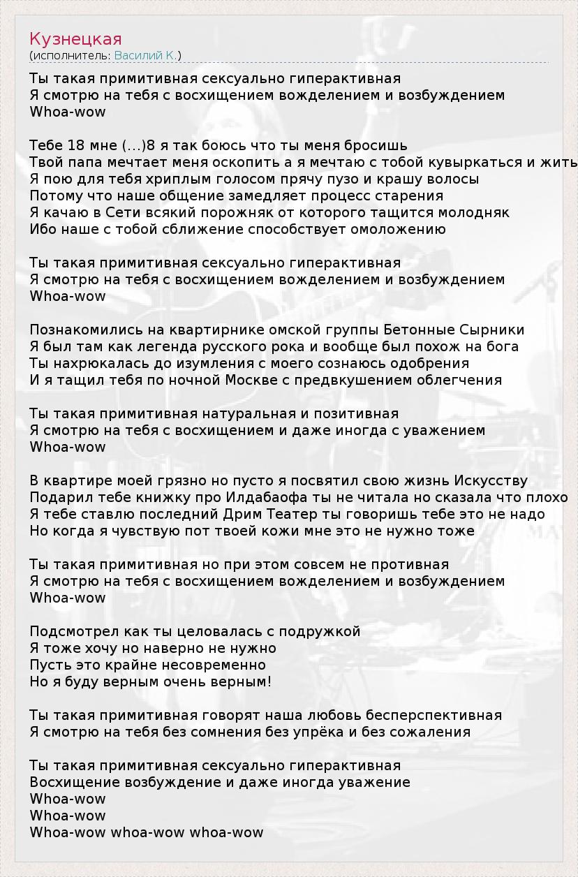 А как ты думаешь, о чем песня "Кузнецкая" ?