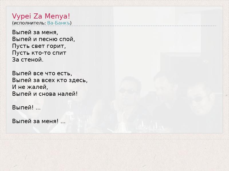 А как ты думаешь, о чем песня "Vypei Za Menya!" ?