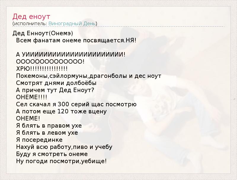 А как ты думаешь, о чем песня "Дед еноут" ?