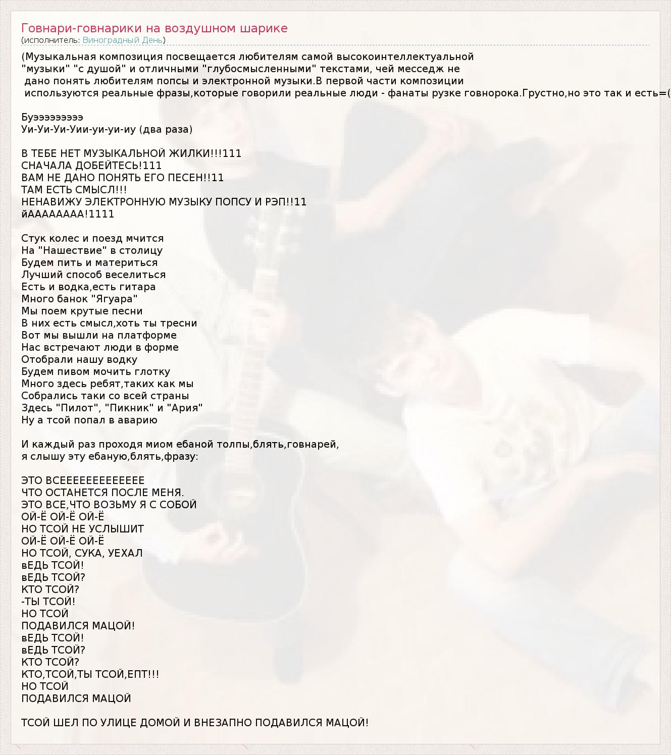 ГлавнаяИсполнителиВиноградный ДеньГовнари-говнарики на воздушном шарике