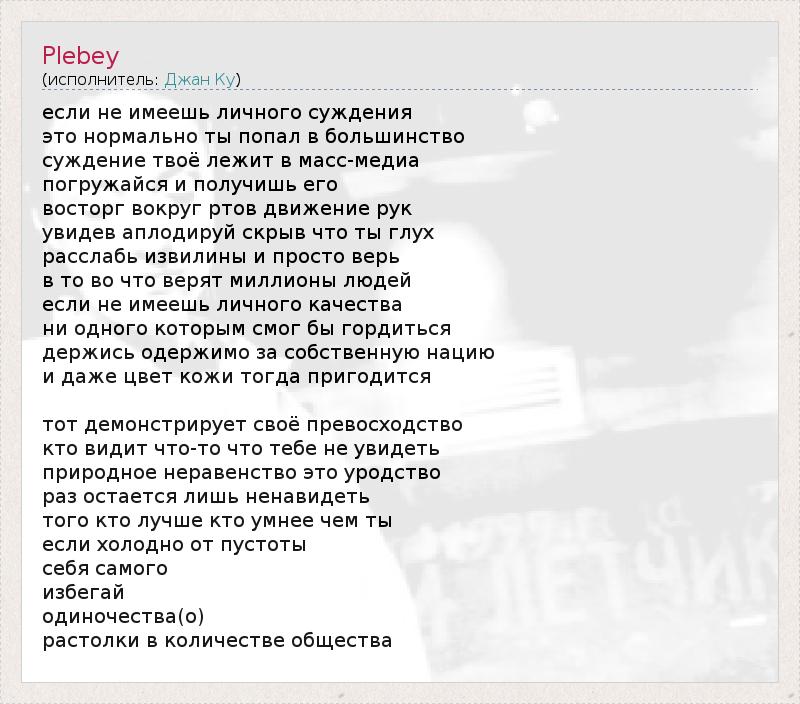 Это интересно:Джан Ку! - зов речного духа из староанглийского фольклора был впервые услышан на берегах Невы гитаристом d# и вокалисткой Ксенией Ермаковой летом 1991 года, и с тех пор они стремились к созданию полноценной группы с таким непривычным названием. Целью их творчества стало смешение всевозможных стилей музыки и поэзии, и это неудивительно - их пристрастия в музыке лежат столь широко: от признанной... продолжение