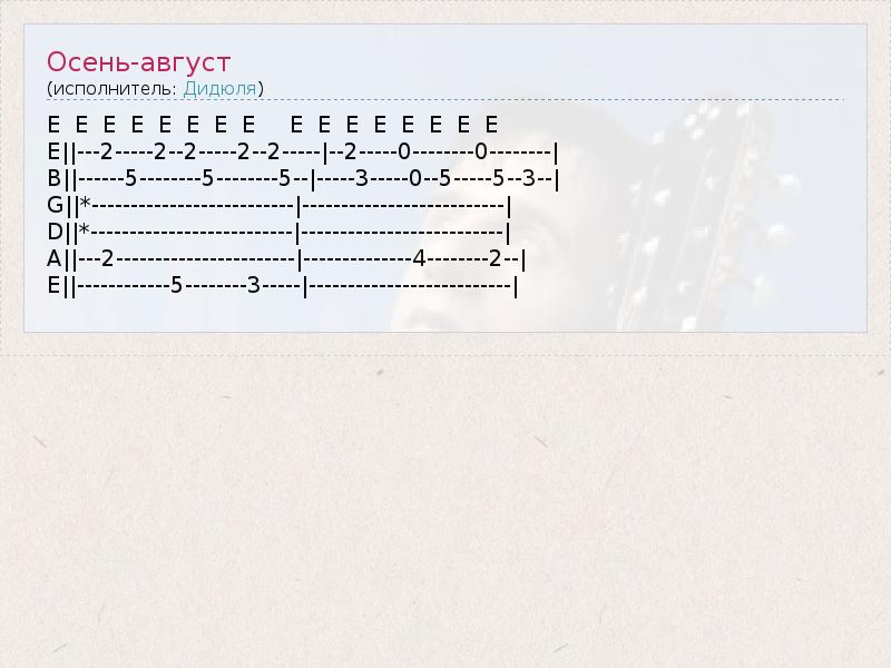 Это интересно:ДиДюЛя – гитарист-виртуоз, композитор и лидер одноименной инструментальной группы, который играет музыку в стилевом диапазоне от нео-фламенко до рока и фолка. ДиДюЛя является самым известным инструменталистом в России.Осенью 2012 года готовится релиз нового номерного CD ДиДюЛи под рабочим названием «Орнаментальный». Также заканчивается работа над новым альбомом «LIVE in Kremlin» в подарочном... продолжение