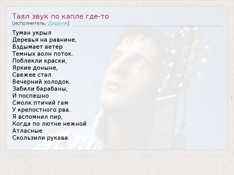 ГлавнаяИсполнителиДидюляТаял звук по капле где-то