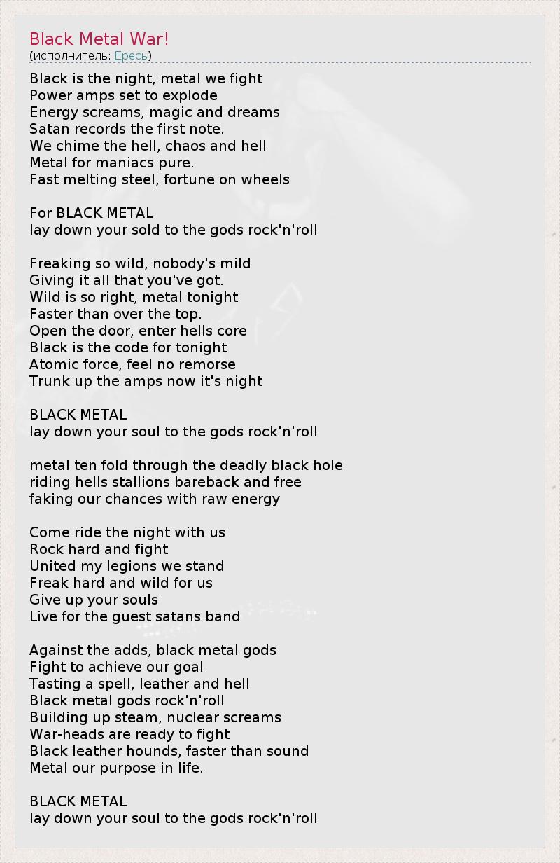 А как ты думаешь, о чем песня "Black Metal War!" ?