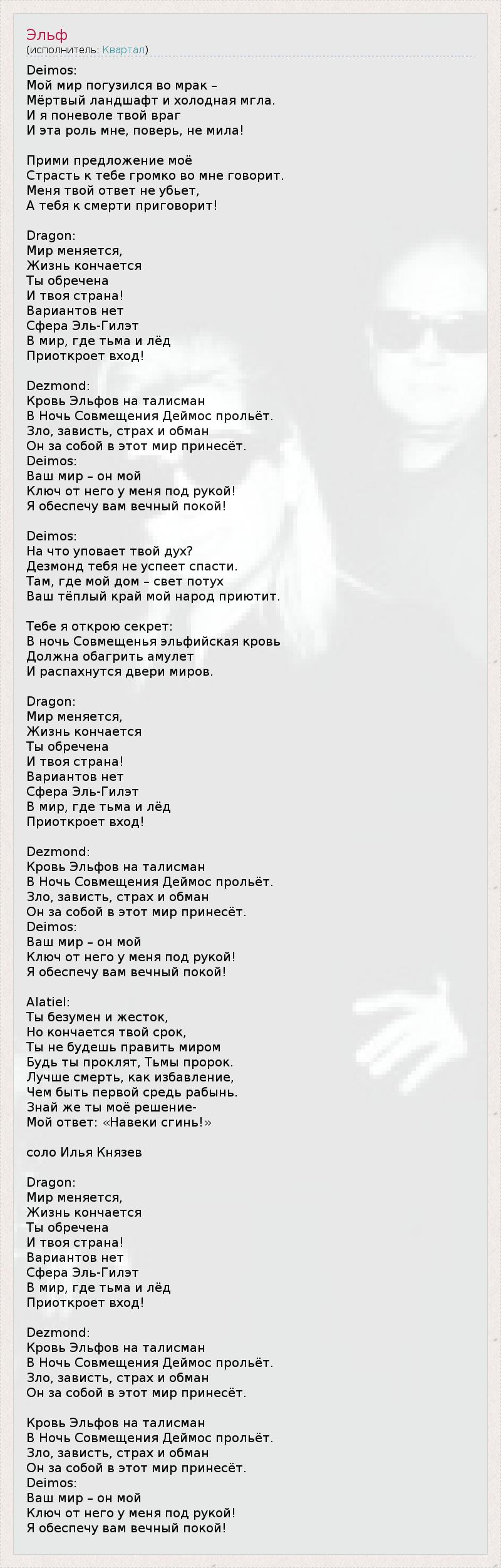 Эпидемия - Кровь Эльфов http://megalyrics.ru/lyric/%D1%8D%D0%BF%D0%B8%D0%B4%D0%B5%D0%BC%D0%B8%D1%8F/%D0%BA%D1%80%D0%BE%D0%B2%D1%8C-%D1%8D%D0%BB%D1%8C%D1%84%D0%BE%D0%B2.htm#ixzz1xg2hQshE
