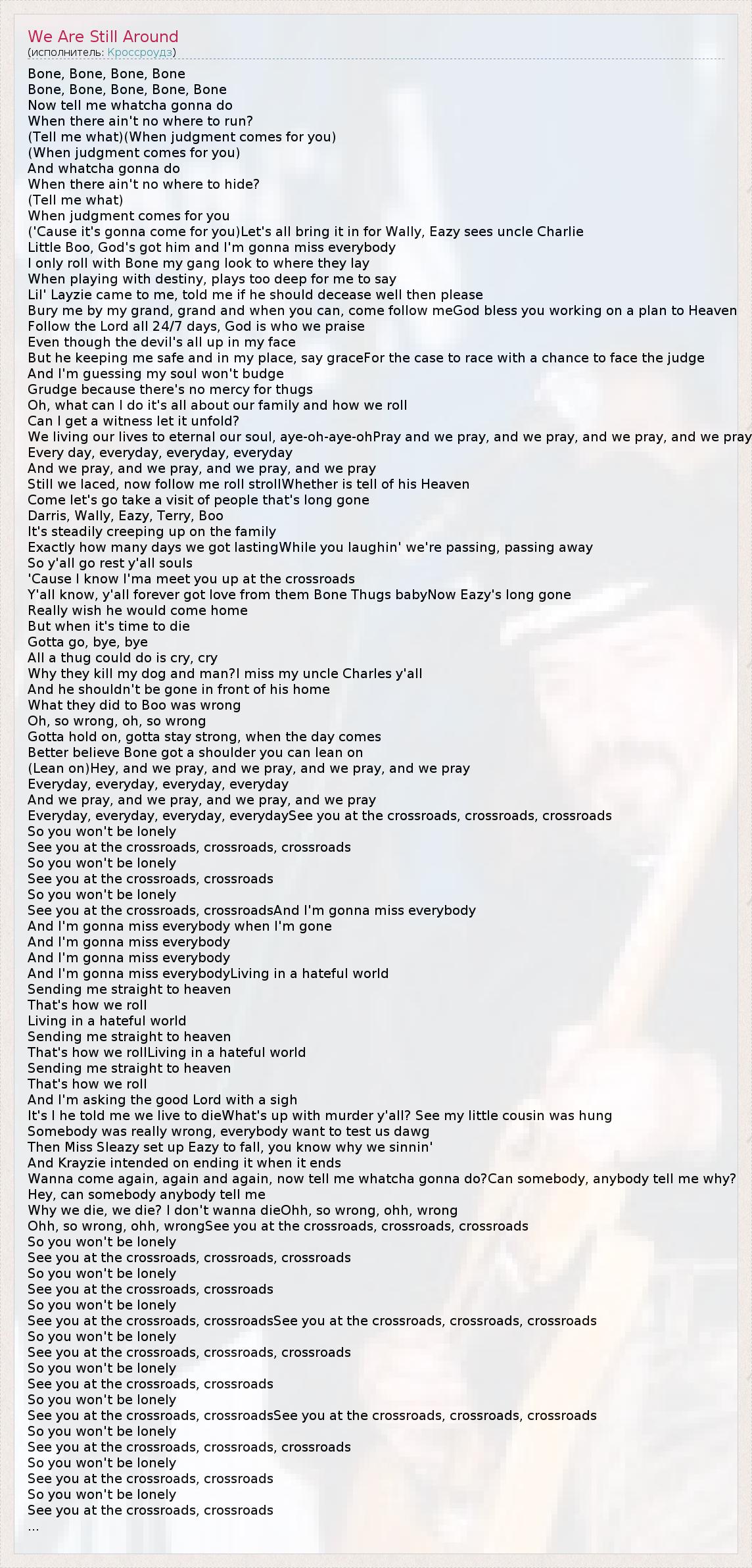 Y'all know, y'all forever got love from them Bone Thugs babyNow Eazy's long gone