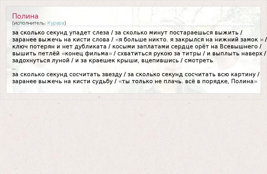 заранее выжечь на кисти судьбу / «ты только не плачь. всё в порядке, Полина»