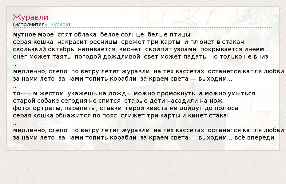медленно, слепо  по ветру летят журавли  на тех кассетах  останется капля любви