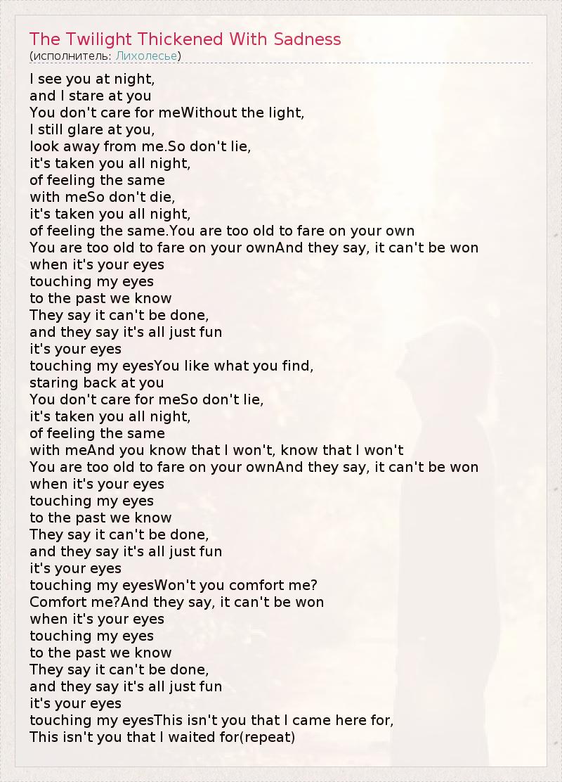 А как ты думаешь, о чем песня "The Twilight Thickened With Sadness" ?