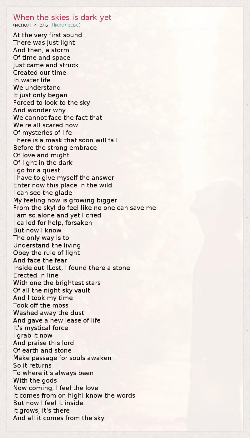 А как ты думаешь, о чем песня "When the skies is dark yet" ?