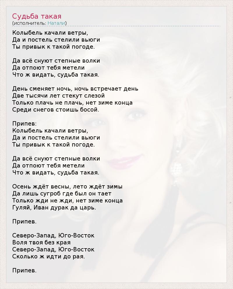 ГлавнаяИсполнителиНаталиСудьба такая