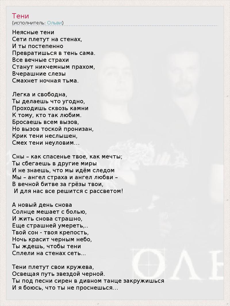 Ольви - Свобода http://megalyrics.ru/lyric/%D0%BE%D0%BB%D1%8C%D0%B2%D0%B8/%D1%81%D0%B2%D0%BE%D0%B1%D0%BE%D0%B4%D0%B0.htm#ixzz24CAKCdYq