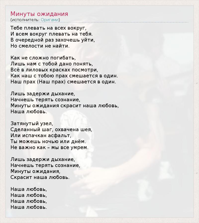 А как ты думаешь, о чем песня "Минуты ожидания" ?