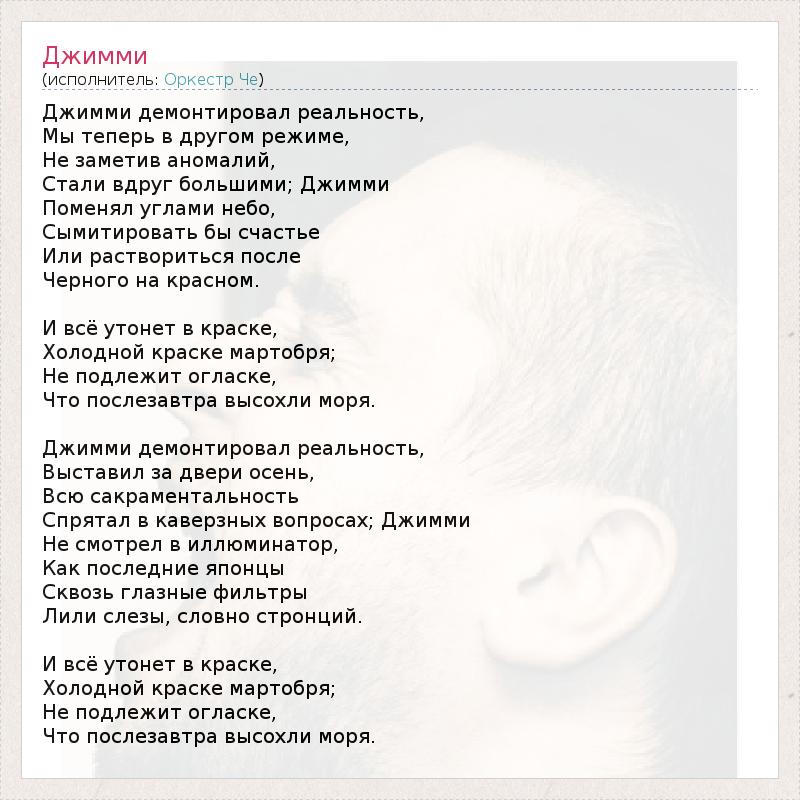 А как ты думаешь, о чем песня "Джимми" ?