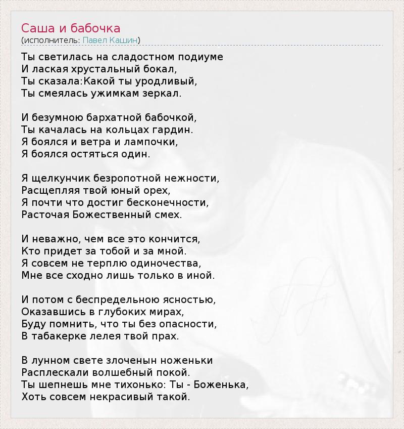 А как ты думаешь, о чем песня "Саша и бабочка" ?