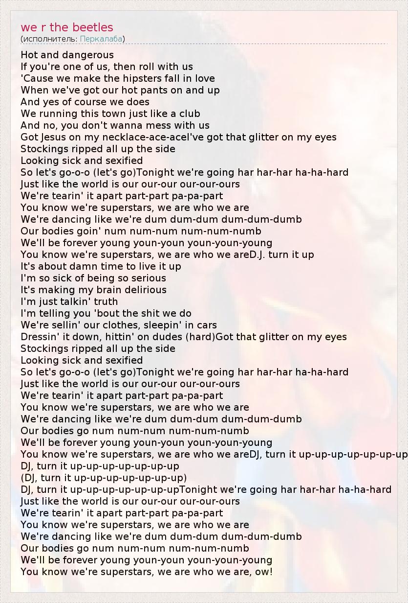 А как ты думаешь, о чем песня "we r the beetles" ?