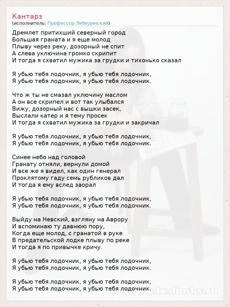Это интересно:Алексей Лебединский (1968), русский певец, автор песен, лидер группы "Профессор Лебединский" ("Я убью тебя, лодочник", "Бегут года") Лебединский Алексей Игоревич (р. 28 мая 1968, Ленинград) - композитор, исполнитель. Окончил музыкальную школу. Начал сочинять музыку, еще будучи учеником средней школы. Играл с И. Суворовым, записал с ним две песни. Поступил в Ленинградский... продолжение