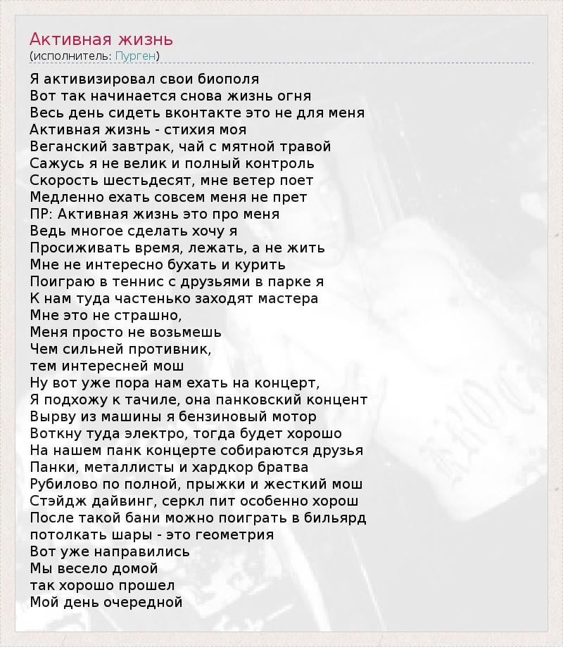 А как ты думаешь, о чем песня "Активная жизнь" ?