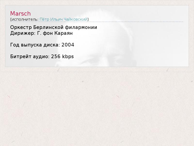 Это интересно:Пётр Ильич Чайковский (25 апреля (7 мая) 1840, в селении при Камско-Воткинском заводе Вятской губернии, ныне город Воткинск, Удмуртия — 25 октября (6 ноября) 1893, Санкт-Петербург) — великий русский композитор, один из лучших мелодистов, дирижёр, педагог, музыкально-общественный деятель. Отец - Илья Петрович Чайковский (1795 - 1880).Окончил Училище правоведения в Петербурге (1859), служил в Министерстве... продолжение