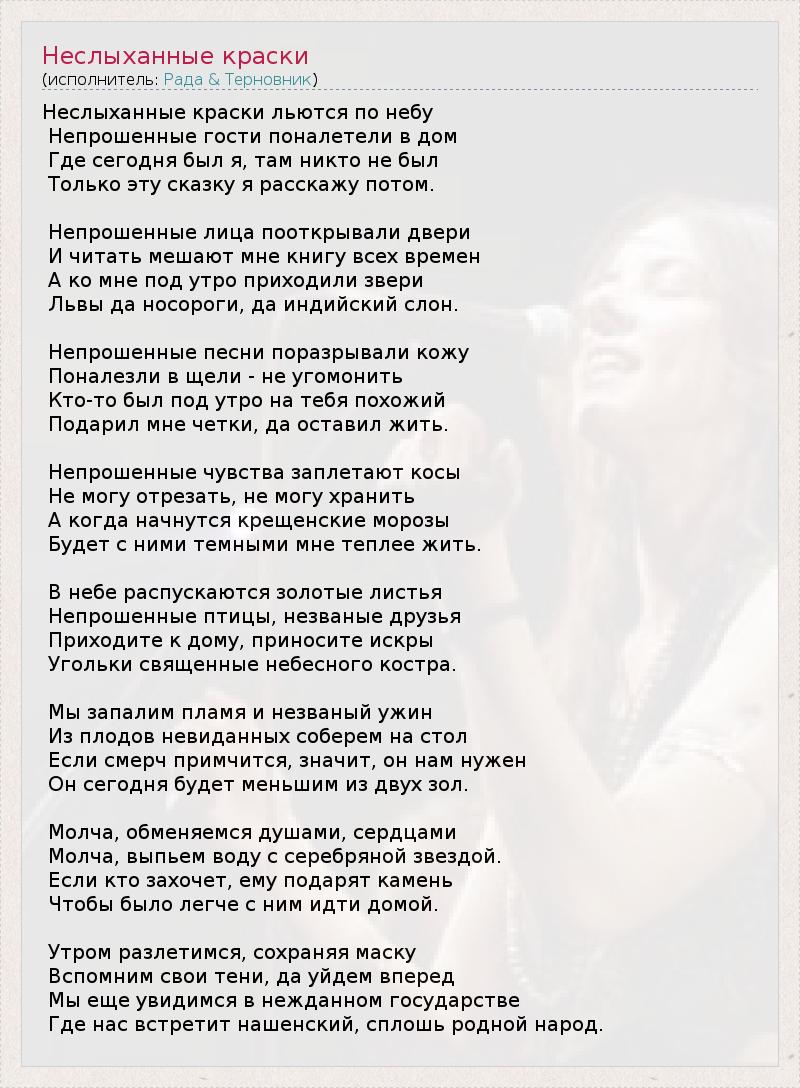 ГлавнаяИсполнителиРада & ТерновникНеслыханные краски