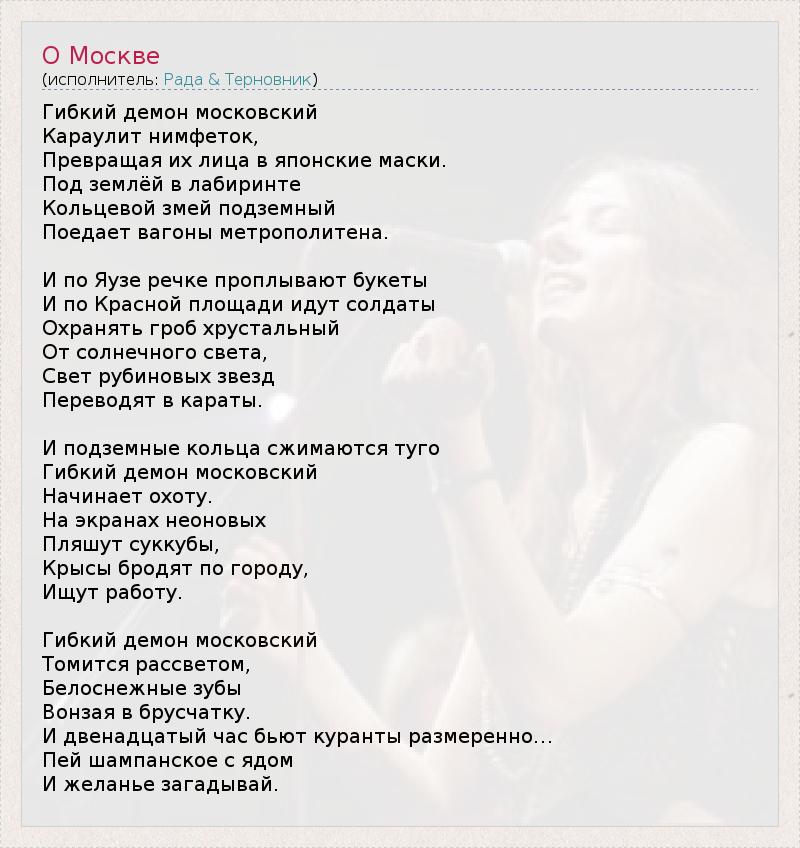 А как ты думаешь, о чем песня "О Москве" ?