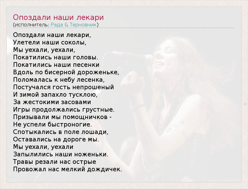 ГлавнаяИсполнителиРада & ТерновникОпоздали наши лекари
