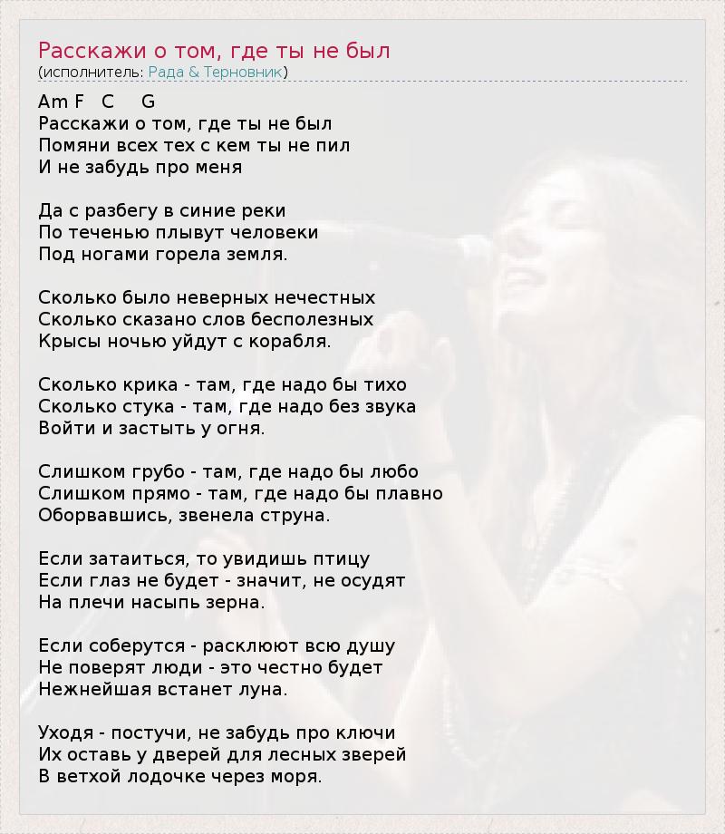ГлавнаяИсполнителиРада & ТерновникРасскажи о том, где ты не был