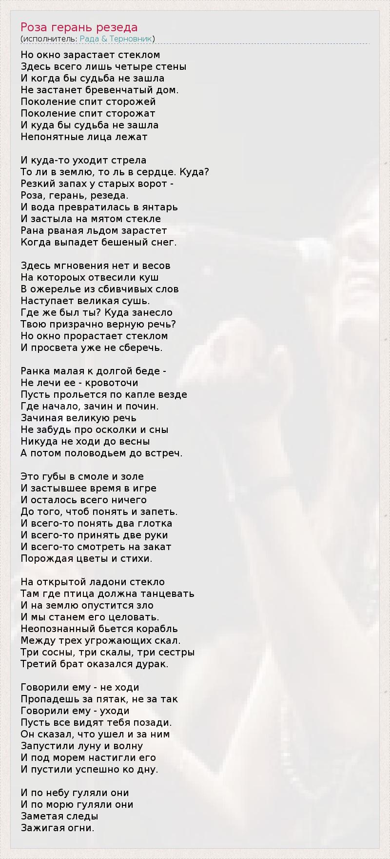 А как ты думаешь, о чем песня "Роза герань резеда" ?