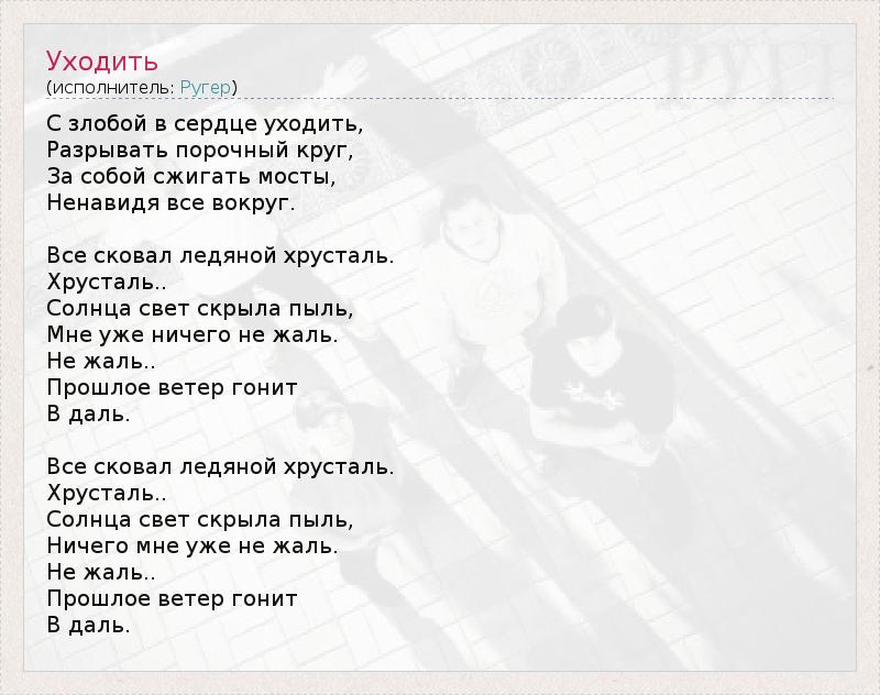 А как ты думаешь, о чем песня "Уходить" ?