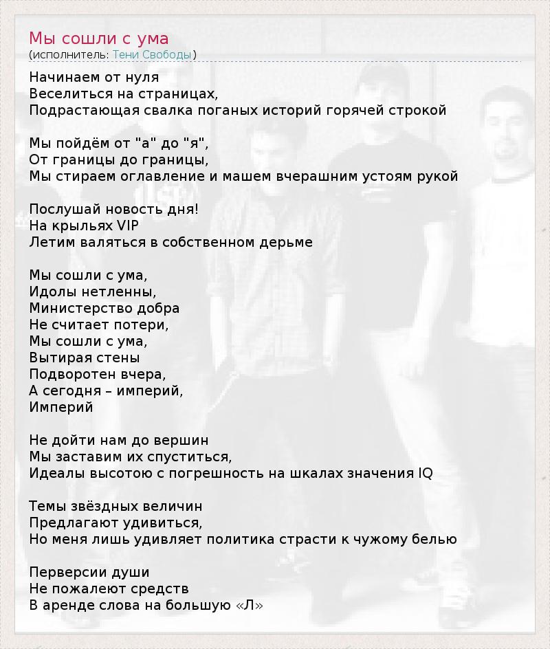 А как ты думаешь, о чем песня "Мы сошли с ума" ?