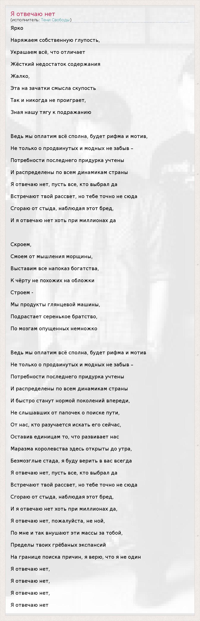 А как ты думаешь, о чем песня "Я отвечаю нет" ?