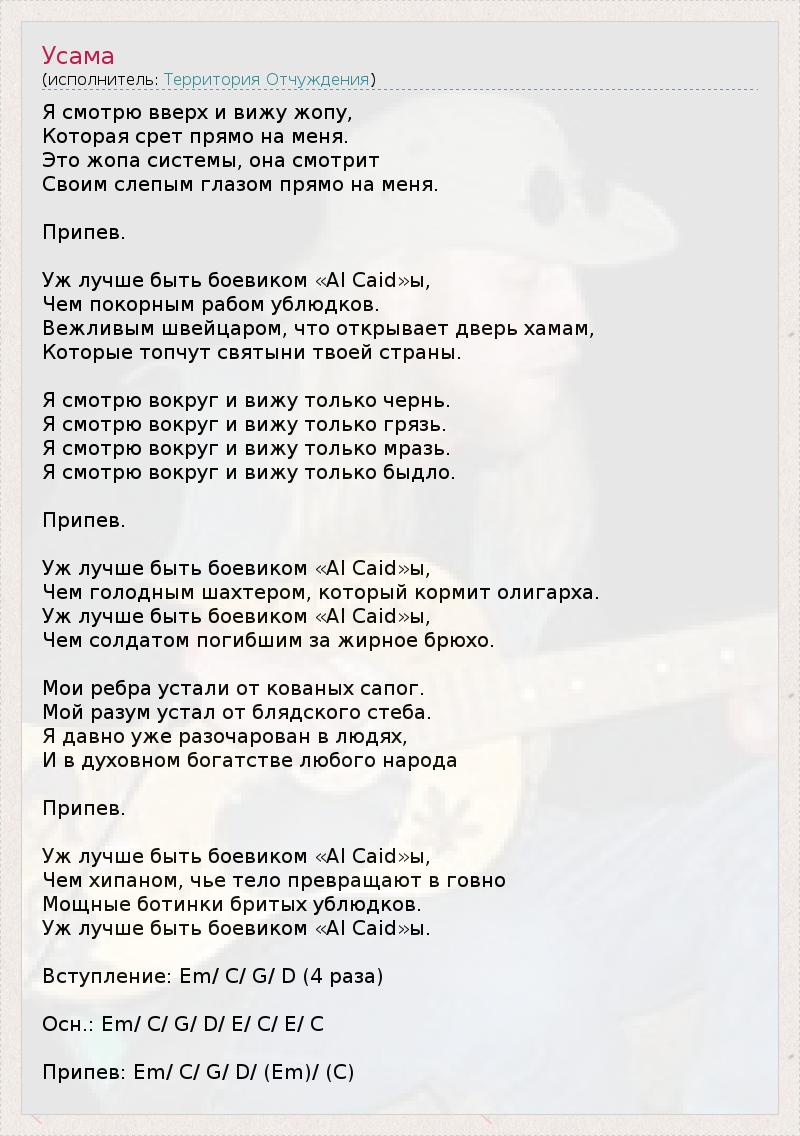 Припев: Em/ C/ G/ D/ (Em)/ (C)