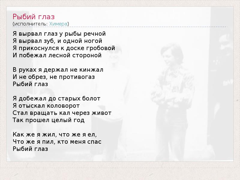 А как ты думаешь, о чем песня "Рыбий глаз" ?