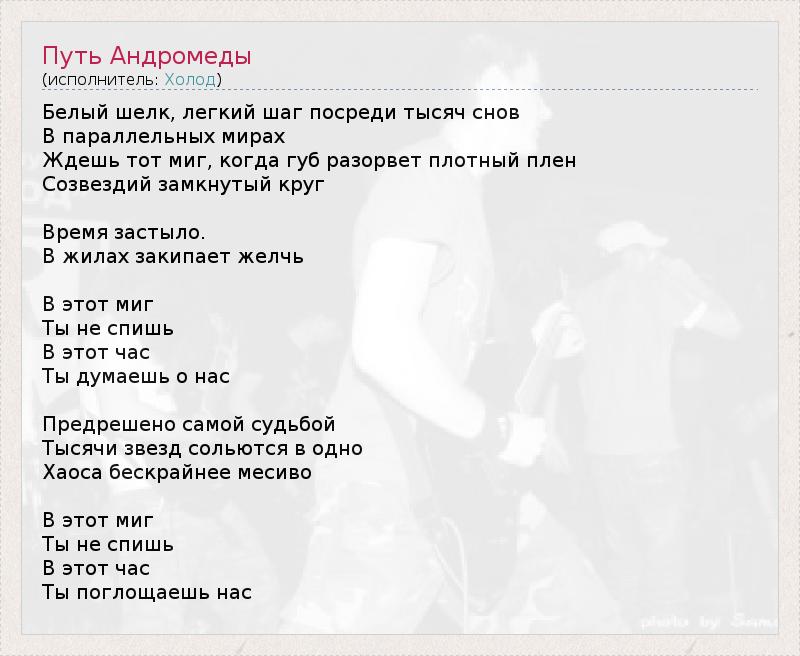 ГлавнаяИсполнителиХолодПуть Андромеды