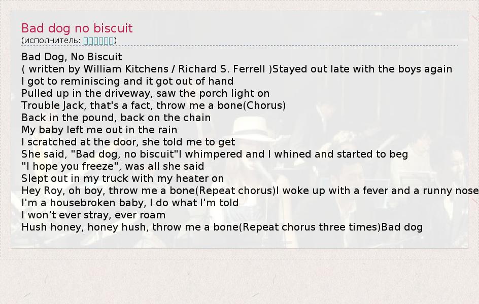 А как ты думаешь, о чем песня "Bad dog no biscuit" ?