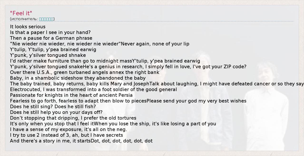 А как ты думаешь, о чем песня ""Feel it"" ?