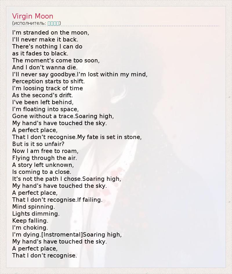 А как ты думаешь, о чем песня "Virgin Moon" ?