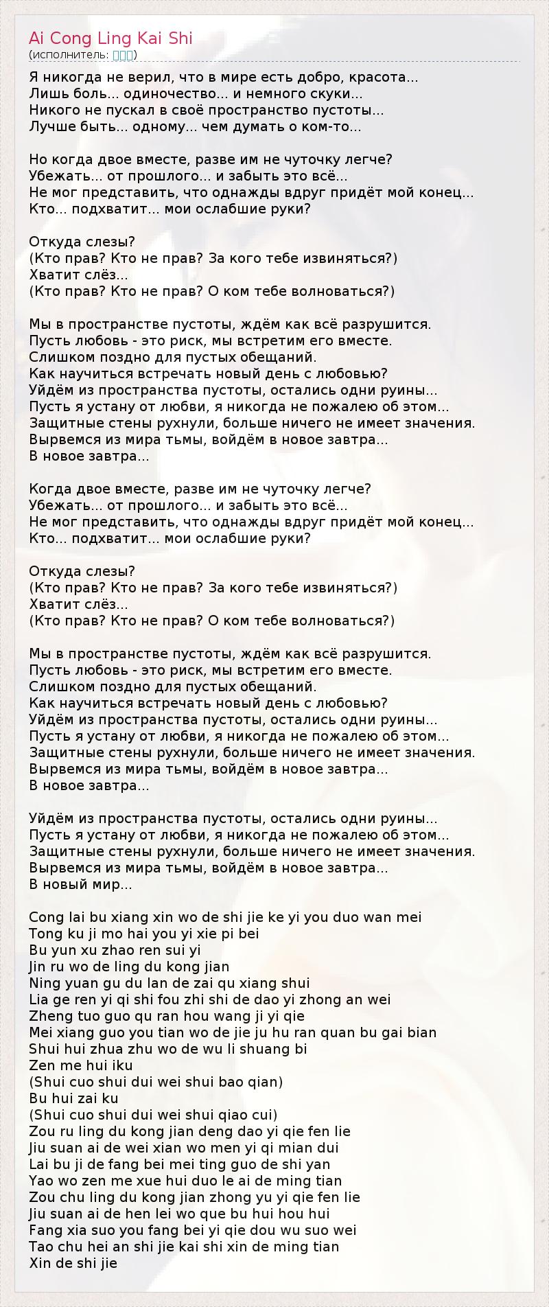 А как ты думаешь, о чем песня "Ai Cong Ling Kai Shi" ?